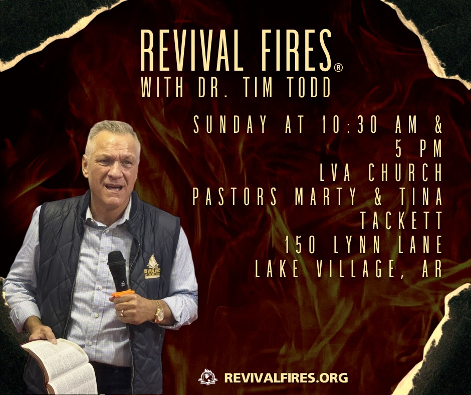 Come expecting a mighty move of God this Sunday morning and Sunday night at LVA Church in Lake Village, AR where Marty & Tina Tackett are pastors!